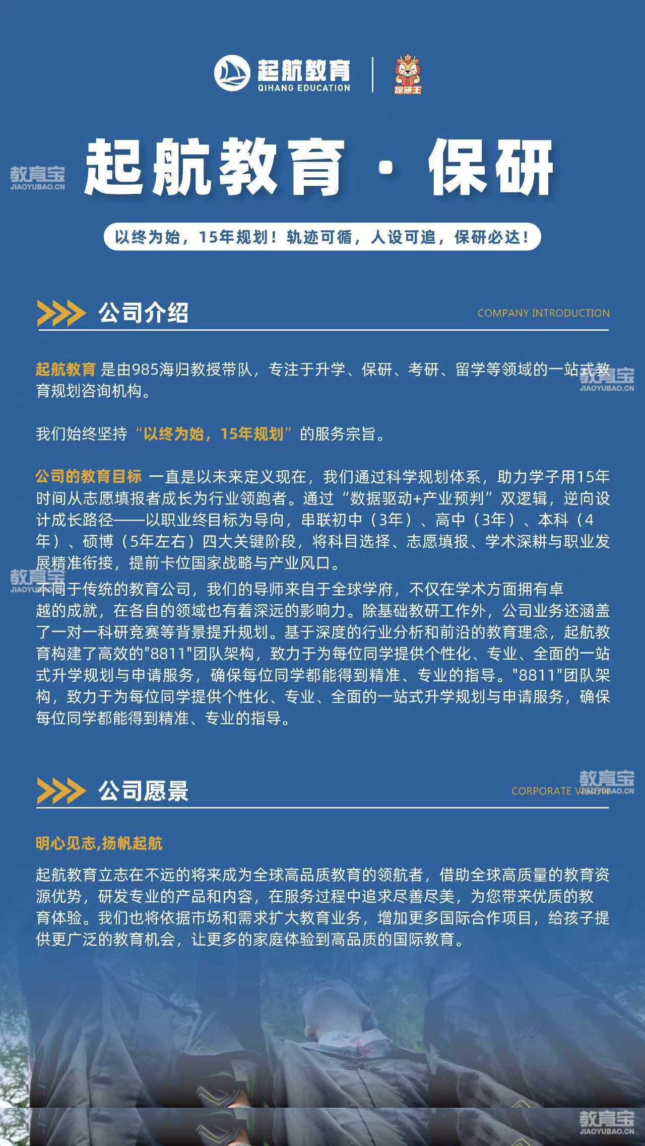 起航教育 是由985海归教授带队,专注于升学、保研、考研、留学等领域的一站式教育规划咨询机构。