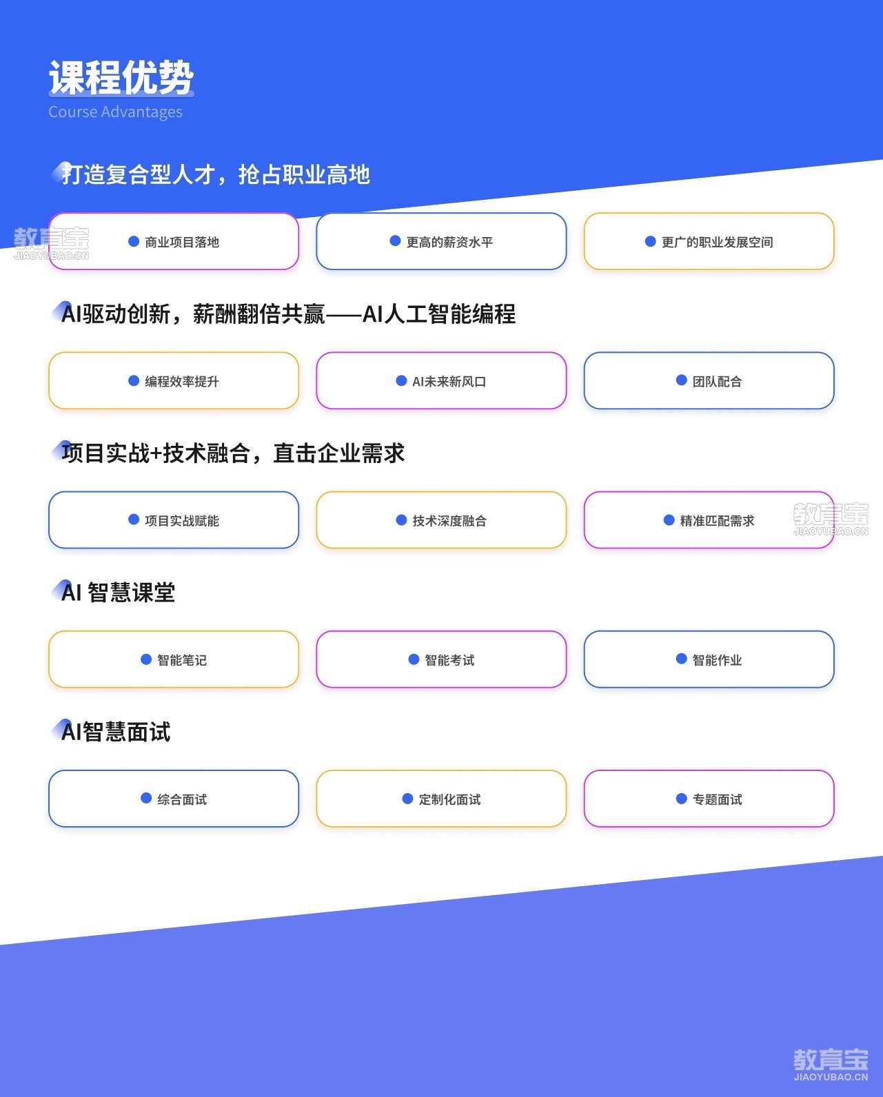 蜗牛学苑全新10.0课程体系均融入AI技术,并结合AI智慧课堂、AI面试官、AI在线教育平台,更加聚焦个性化教学,提升学员学习质量和业务能力,助力学员高薪就业。