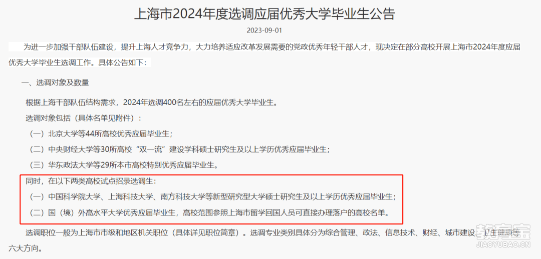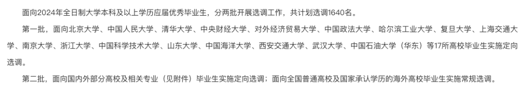 截图自网络 在2024的招录计划中,江苏计划招录1170名选调生,其中面向县级以上机关职位的定向选调生(即学校优生选调)600人。 2023年,广东选调应届优秀大学毕业生2446名。 对于回国就业的留学生来说,这可能成为不错的就业机会。 这里提供四川、北京、上海今年的定向选调海外高校名单,共大家参考。 四川(共54所):