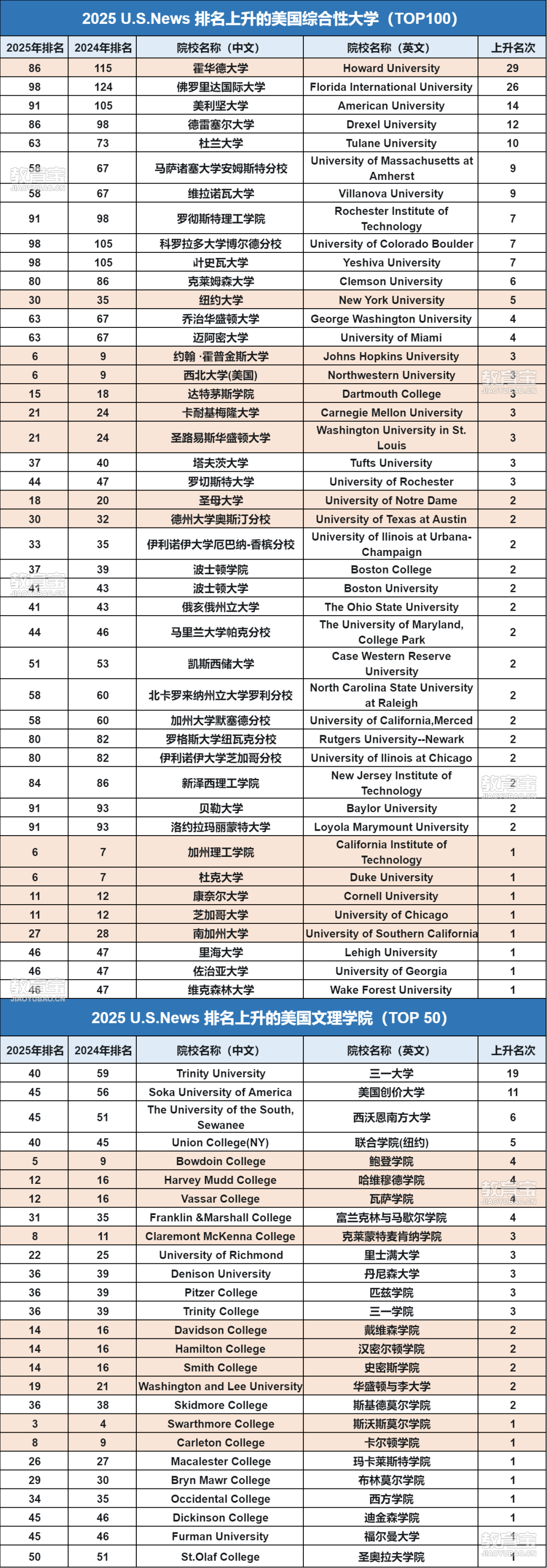 添加微信小助手18900767506,免费领取各国留学资料包25年U.S.News全美大学排名公布后,几家欢喜几家愁。有些学校的排名“飞升”,自然喜不自胜;有些学校排名有所下降,让众多留学生不知是该“捡漏”还是“跑路”...今天就和大家盘点一下连续3年排名上升的院校~