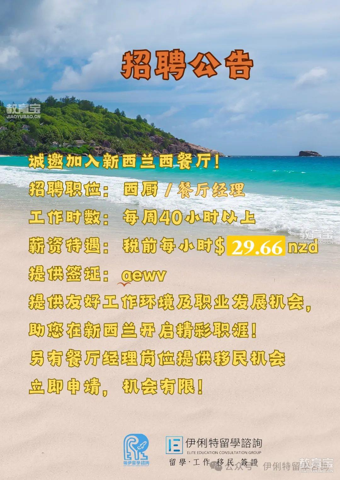 ????新西兰-奥克兰:诚聘厨师?????与餐厅经理?提供工作签证?另有移民通道时薪税前中位数$29.66起跳??欢迎咨询 发送简历微信:eecgroup#新西兰工作签 #移民绿卡 #名额有限