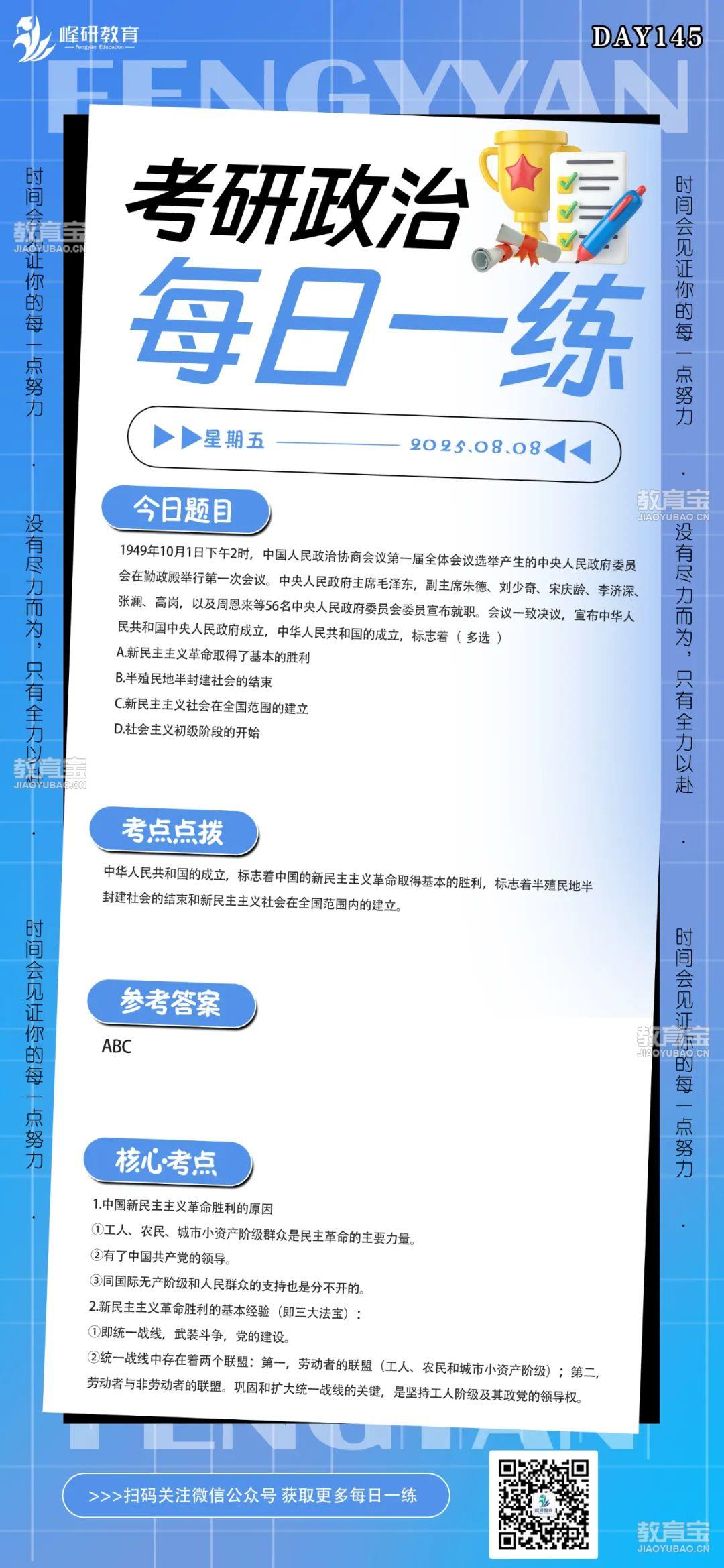 “每日一练”??时间会见证你的每一点努力??别忘了在评论区留言打卡哦~01英语 每日一练*点击查看高清图片*关注官方微博获取每日解析视频02数学 每日一练*点击查看高清图片*关注官方微博获取每日解析视频03政治 每日一练*点击查看高清图片*关注我们解锁更多政治知识04管综 每...