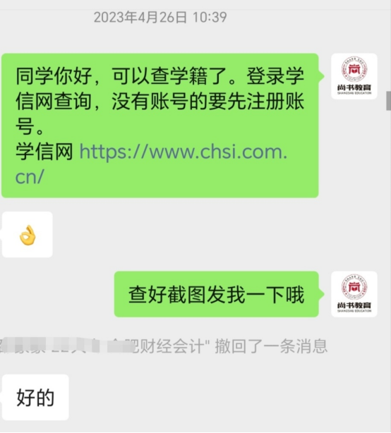 在2023年春季,我根据学校官网的入学须知,帮邵同学准备好各项入学材料,在线办理了入学申请。在学校核查及录完个人信息后,在4月份邵同学终于可以在学信网查询到学籍了。咱们有学籍咯。