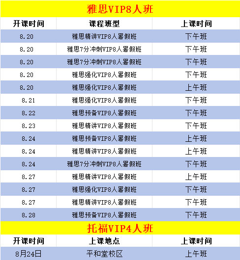 *以上课表仅供参考,具体开课时间以教务排课为准!??线上咨询有额外福利优惠????如果你有疑问??联系小航,免费获取测试题??电话/微信预约试听课:18817100095步履不停 不负盛夏 来 新航道暑假班现在开始,摒弃懒惰