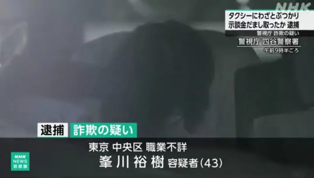 逮捕されたのは、東京 中央区の職業不詳、峯川裕樹容疑者(43)です。被捕的是东京中央区职业不详的峯川裕树嫌疑人(43)。警視庁によりますと去年10月、東京 新宿区の路上で、タクシーにわざと自転車でぶつかり、示談金として5000円をだまし取ったとして詐欺の疑いが持たれて...