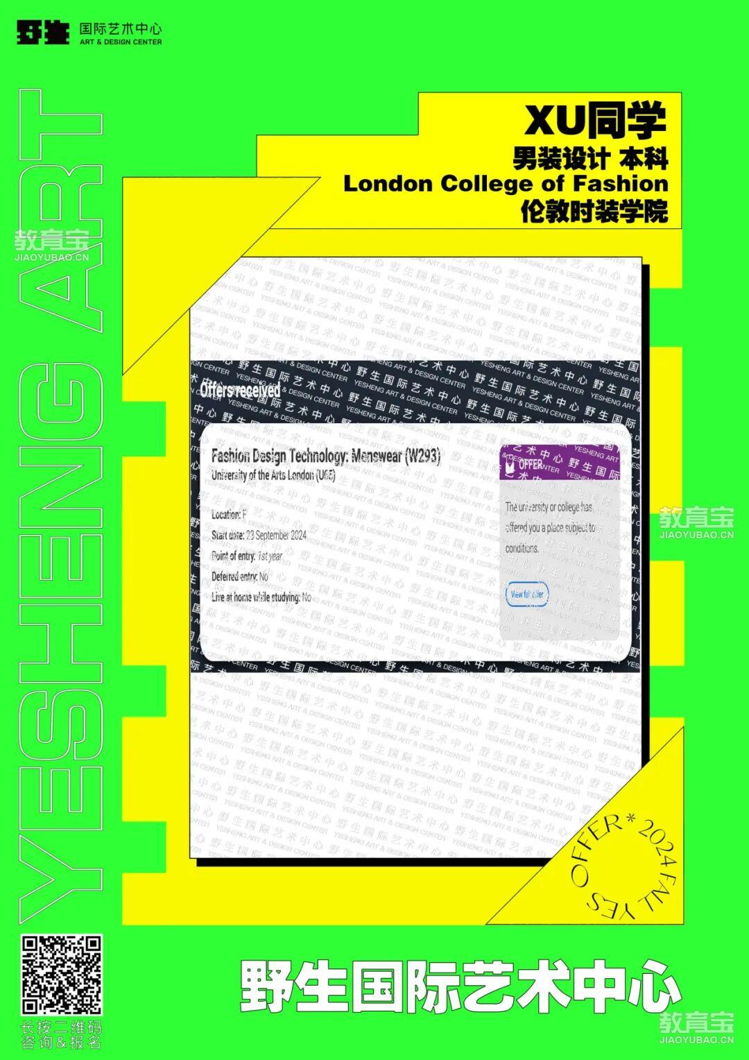 XU JIAYUE? OFFER 录取院校/专业伦敦时装学院London College of Fashion 服装定制Bespoke Tailoring BA伦敦时装学院London College of Fashion男装设计Menswear BA伦敦时装学院London College of Fashion创新面料剪裁Pattern Cutting BA