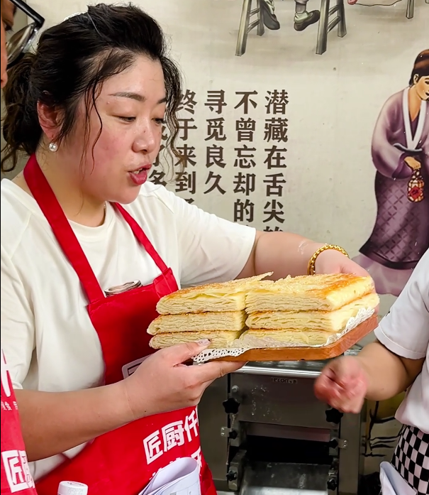 千层饼:碳水脑袋的诱惑工艺突破:采用 “折叠擀压法”,饼皮酥到掉渣却不散架,每口都能吃到 12 层不同口感。搭配秘制椒盐粉(花椒 + 小茴香 + 海盐),空口吃都停不下来。创业优势1:技术门槛低,简单易上手核心工艺是 “揉面 - 擀皮 - 叠层 - 烙制”,无需发酵(或短时间醒发)、无需复杂造型,新手通过 1-2 天练习即可掌握,无需专业面点师资质。创业优势2:价格亲民,复购率高单份售价 5-10 元,属于 “无压力消费”,顾客高频购买(如上班族每周 3-4 次早餐选择),稳定复购支撑营收。葱花油饼