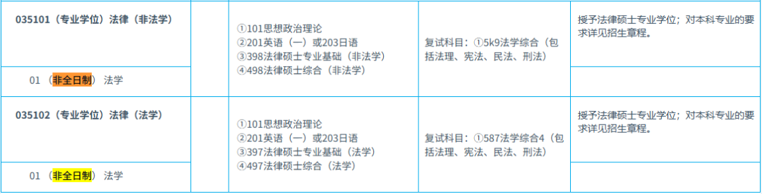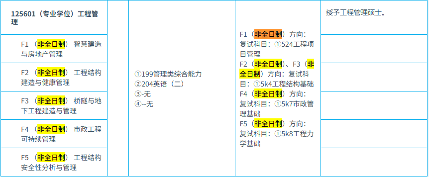 报考条件(一)中华人民共和国公民。(二)拥护中国共产党的领导,遵纪守法,品德良好。(三)身体健康状况符合国家规定的体检要求。(四)考生学业水平须符合下列条件之一:1.国家承认学历的应届本科毕业生(含普通高校、成人高校、普通高校举办的成人高等学历教育等应届本科毕业生)及自学考试和网络教育届时可毕业本科生。2.具有国家承认的本科毕业学历的人员。3.获得国家承认的高职(专科)毕业学历后满2年及以上人员(毕业后到录取当年入学前,下同)或国家承认学历的本科结业生,且符合以下条件,可按本科毕业同等学力身份报考:(1)提供由大学教务部门出具的本科专业全部必修课程学习证明及*单;(2)参加全国大学英语四级考试取得合格证书或*在425分及以上;或进修过满2年(4个学期)的本科英语课程,*合格(须由所进修的高校教务处出具本科*证明原件);(3)以第*作者在核心期刊发表过与报考专业相关的学术论文。4.已获硕士、博士研究生学历或学位的人员。(五)报考035102法律(法学)专业学位的,须符合(一)(二)(三)(四)项要求,且报考前所学专业为法学专业(获得法学第二学士学位的人员可报考)。报考035101法律(非法学)专业学位的,须符合(一)(二)(三)(四)项要求,且报考前所学专业须为非法学专业。(六)报考医学类招生专业的,须符合(一)(二)(三)(四)项要求,且须满足招生目录中的备注要求,报考前请注意查看招生目录。(七)报考125100工商管理、125200公共管理、125601工程管理专业学位的,须符合(一)(二)(三)项要求,且须符合下列条件之一:本科毕业后有3年以上工作经验;或获得国家承认的高职(专科)毕业学历或本科结业后,达到本科毕业同等学力并有5年以上工作经验;或获得硕士、博士研究生学历或学位后有2年以上工作经验。学习方式为“非全日制”,报考类别为“定向就业”。2027年招生起,125604物流工程与管理也须符合第(七)项要求。03