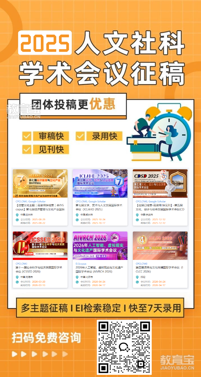 ↑↑↑扫描上方二维码添加会议老师领取【学术会议投稿加速包】热门学术会议能源环境、水利土建、人文社科机电工程、生物医学、计算机等多领域持续征稿扫描下方海报二维码了解最新会议信息、投稿优惠??????