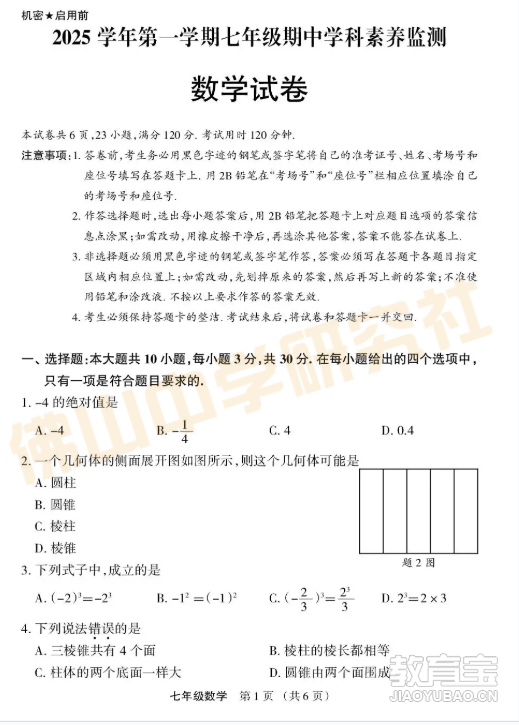 期中陆续开考!试题难度如何?小方老师收集了首波初中期中试卷,一起来围观!01佛山初一期中数学真题卷