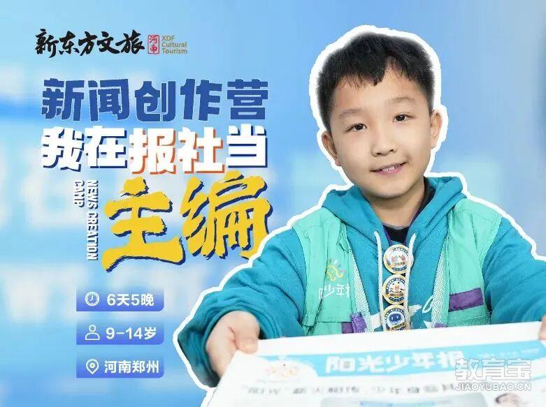 【郑州】新闻创作营·我在报社当主编招生年龄:9-14岁地点:新东方营地项目介绍??国家顶级报社合作;资深主笔教你出报纸??三重新媒体视角读河南;体验百万报社出版实务??5项高含金量证书和实践证明;多项研学体验和项目成果