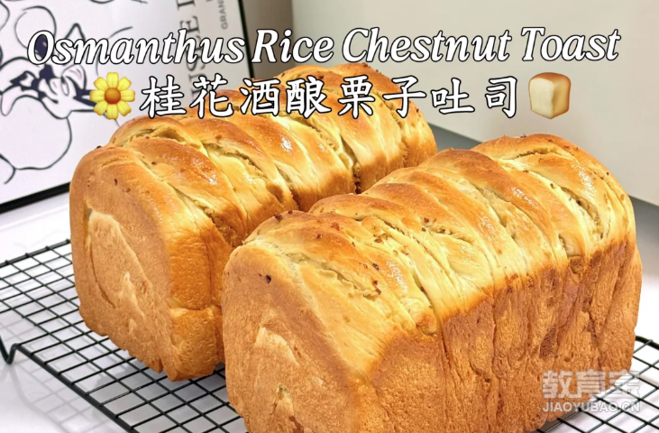 ??吐司质地松软绵密 带有酒酿的清甜以及桂花的淡雅芬芳每一口都能感受到浓郁的秋日气息 栗子的加入则增加了口感的丰富度其软糯的质地与松软的吐司形成鲜明对比香甜可口让人回味无穷准备食材:(2个450吐司??) 高筋面粉520克 牛奶220克 酒酿80克 全蛋液60克 糖50克 桂花蜜20克 鲜酵母15克 黄油50克 盐3克 ??栗子泥准备食材: 板栗250克 煮板栗水适量 淡奶油70克 黄油20克 糖30克 ??栗子馅准备食材: 自制熟栗子泥300克 桂花蜜30克 (根据栗子泥的甜度调整)