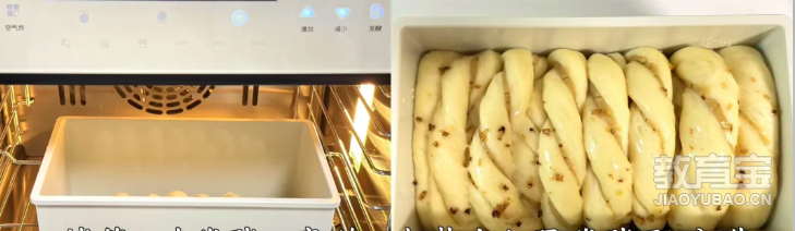 面团收圆烤箱选择发酵功能29度放一杯水加湿发酵至2倍大