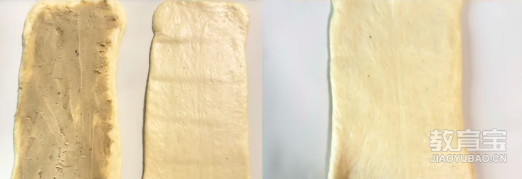 发酵完成排气分割3等份松弛15分钟擀成宽14cm长35cm的长方形