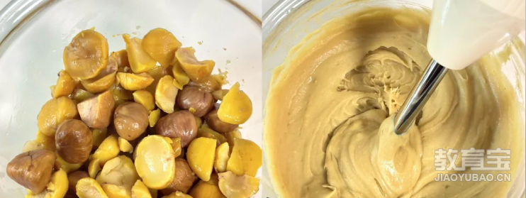 栗子馅制作步骤:板栗煮熟加适量煮栗子水搅打成泥