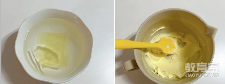 吉利丁片提前冷水泡软;奶油奶酪?糖搅拌顺滑
