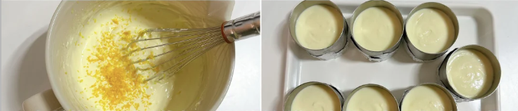 擦点柠檬皮屑搅拌均匀,装入裱花袋挤入饼干底模具,放冰箱冷藏