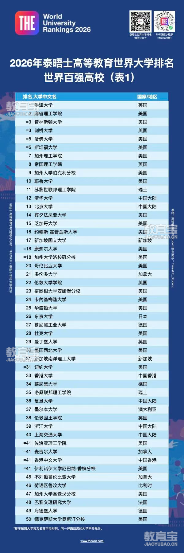 刚刚,泰晤士高等教育(THE)2026年世界大学排名新鲜出炉!