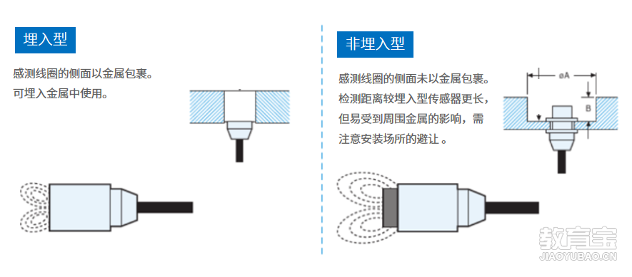 我们在设计接近开关的安装板时,要特别注意选用的是埋入型的还是非埋入型的,如果是埋入型的可以平面安装,如果是非埋入型的,感应头这个位置的四周是需要挖空避让的,防止干扰。