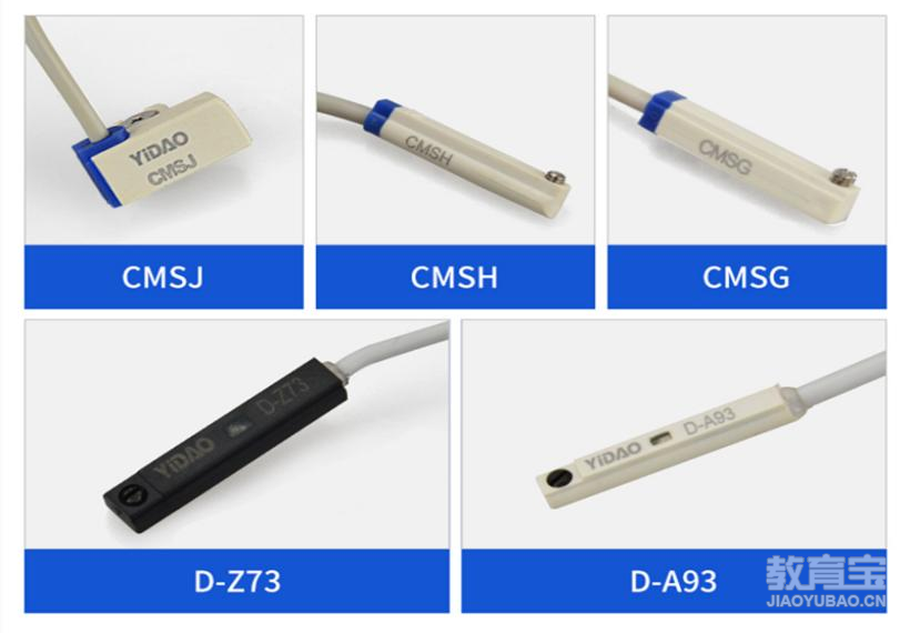 接下来给大家介绍非标设计常用的几种传感器:一、磁性开关 磁性开关也叫磁黄开关,主要用来检测气缸活塞位置(气缸必须带磁才行),即检测活塞的运动行程。使用磁性开关可以反馈气缸活塞杆伸出的位置,但是检测精度不高。