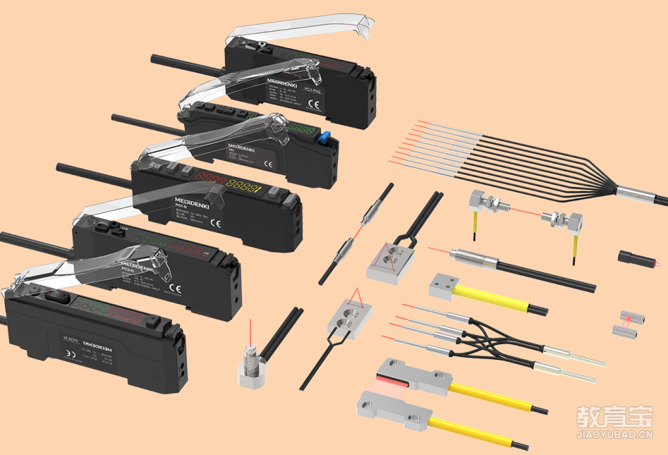 六、光纤传感器光纤传感器也是通过光电信号来进行检测,与光电开关相比,它的价格比较贵,能够检测微小的物体,通常用于比较精密或者对安装位置比较严苛的场合,但是它不适合使用在运动的场合,因为光纤比较容易断。有反射式的,也有对射式的,反射的检测距离相对比较短,一般光纤头和放大器是分开的,两者搭配使用。