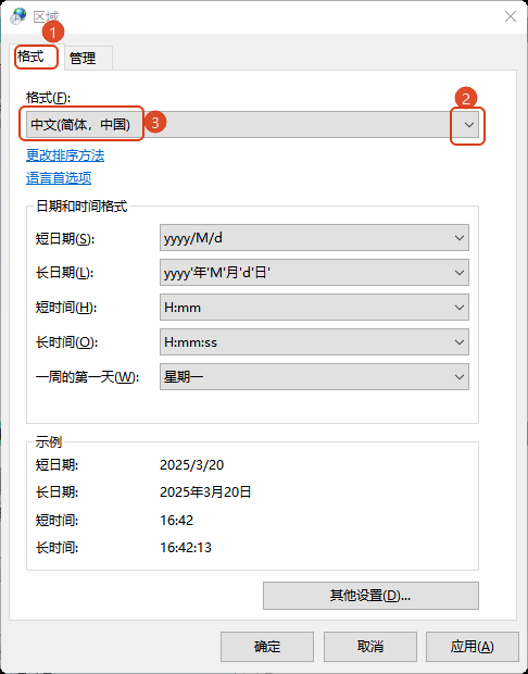 ?? STEP 2:调整区域格式1?? 选择【区域】2?? 在"格式"选项卡下 → 将格式设置为【中文(简体,中国)】(如图3)
