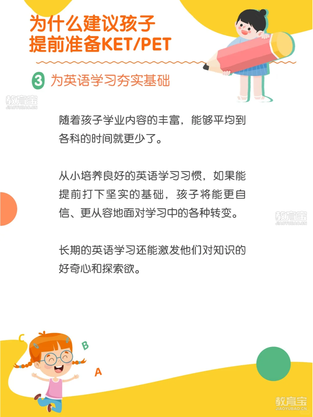 不太了解剑桥少儿英语考试(Cambridge Young Learners English Tests)的家长们,可以参考下方图片,或点击蓝字链接看看考试相关内容??涨知识!一文读懂剑桥KET、PET、FCE!对于小低年级的孩子来说,提前系统性地进行相关学习,可以为英语打下坚实的基础。