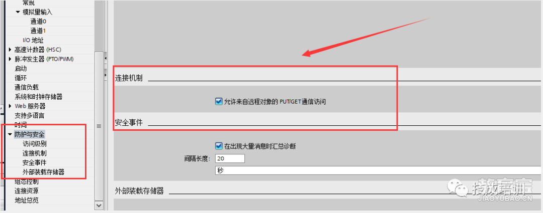 第6步:选择防护与安全,勾选连接机制中的“允许来自远程对象的PUT/GET通信访问”