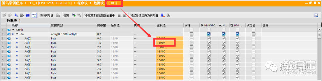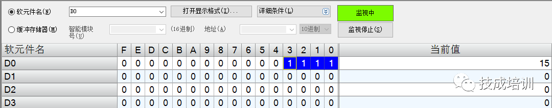 注:西门子是高位在后,低位在前。15的十六进制为F。来源:技成培训网,作者:林瑞花,未经允许不得转载~别忘了点赞+在看哦!