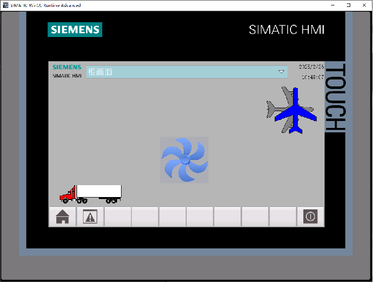 SIMATIC Basic Panel 实现:SIMATIC Basic Panel 和 Smart Line 一般版版类似,创建 Int 类型变量控制图片切换,再配合周期≥100ms 的定时器递增变量值,根据变量值切换图片,模拟风扇旋转。