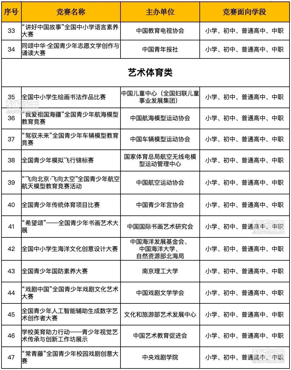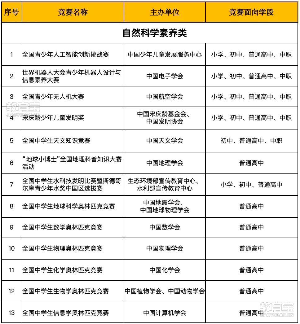 9月11日教育部正式公布《2025—2028 学年面向中小学生的全国性竞赛活动名单》!