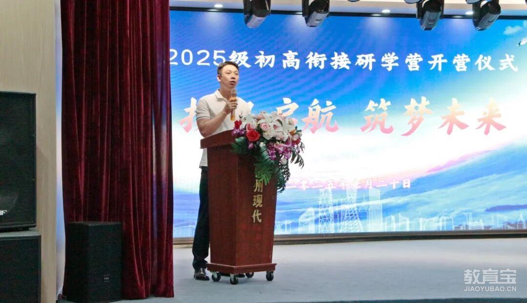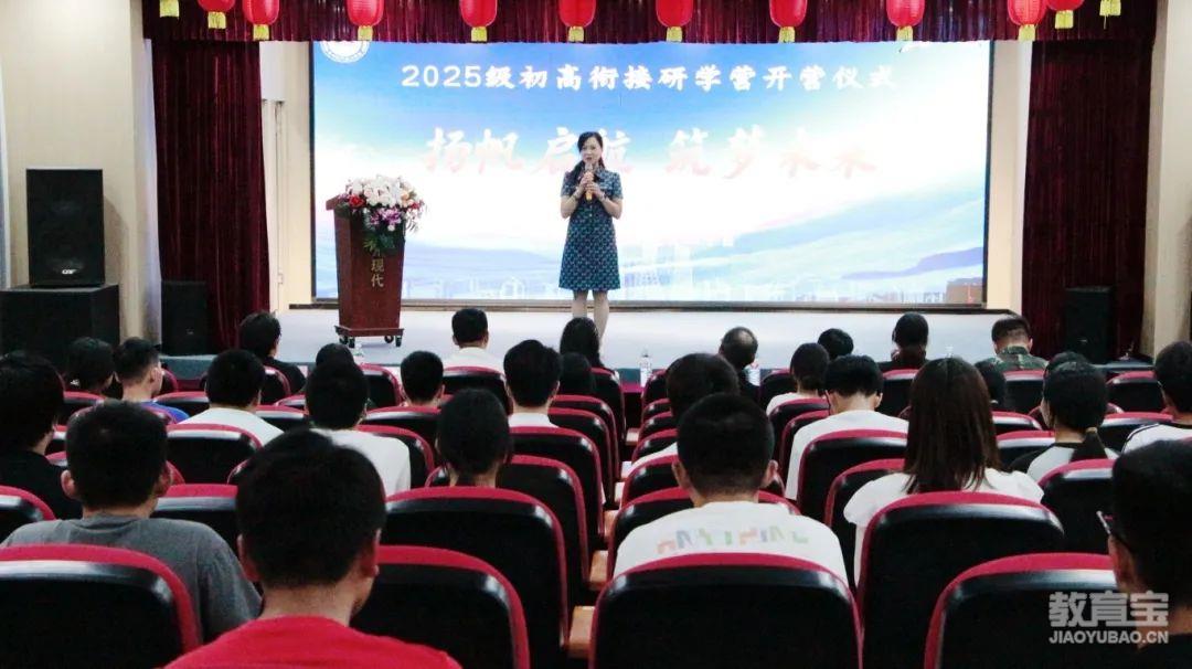 仪式伊始,"校长妈妈" 陈丽萍率先致辞。她以温暖而坚定的话语向本次参营的新生致以祝贺与欢迎,她强调高中是人生成长的关键转折点,初高衔接不仅是知识的过渡,更是心态与能力的重塑。"这个夏天,我们要一起帮孩子们击碎迷茫,让高中成为梦想的跳板。" 她鼓励同学们以衔接研学营为契机,主动探索、勇敢突破,在学校的精心培育下实现从 "升学" 到 "成才" 的跨越。