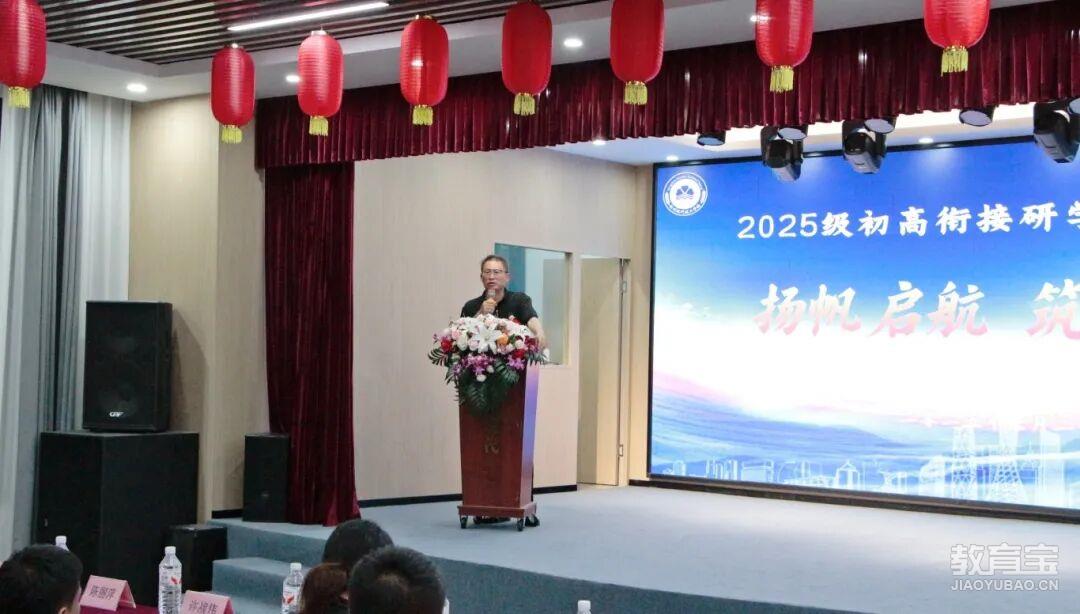 各位课任老师依次为同学们送上鼓励。语文老师汪飘飘作为教师代表发言,她提到数据显示超 60% 的高一新生因准备不足陷入适应困境,而本次衔接研学营将通过 "精准诊断、生活技能培养、心理建设" 三大模块,为每位同学定制成长方案。"高中学习不仅要知 " 是什么 ",更要懂 " 为什么 "," 她鼓励同学们主动思考、大胆提问,"无论遇到什么问题,老师永远是你们的后盾。"03领航·启新程