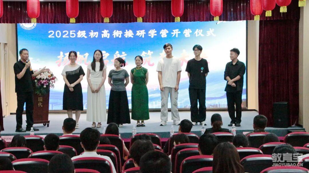 本次开营仪式由董事长助理兼高中部主任刘艳萍主持,同学们心目中的”校长妈妈“——杭现董事长陈丽萍、高中部副校长许战伟、校长助理杜云飞、高中部政教处主任夏豪、招生办副主任于梦、训管处副主任严林、团委书记罗国峰等校领导出席,与 2025级初高衔接研学营师生共同见证这一意义非凡的时刻。
