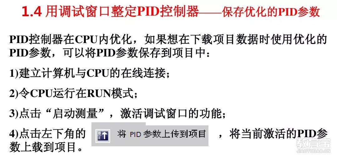 模拟量闭环控制系统-PID控制的特点:不需要被控对象的数学模型,结构简单容易实现,使用方便有较强的灵活性和适应性。用调试窗口整定PID控制器-调试窗口的功能:1、使用“启动自调节”功能优化控制器2、使用“运行中自调节”功能优化控制器,可以实现*佳调节3、用于趋势视图监...