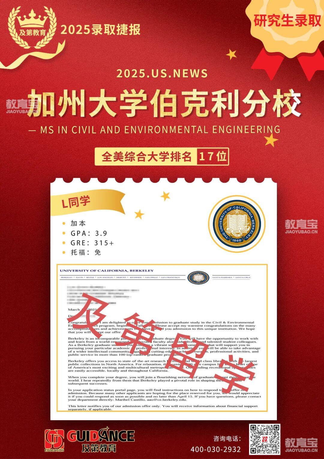 加州大学系统近期发布重要通知:为满足加州教育需求增长,UC计划在未来数年显著提升招生规模——将在原定100万个学位目标基础上,额外增加20万个本科和研究生学位!2026年秋季入学的申请者将成为这一政策的首批受益者。不过,扩招并不代表录取标准下降。在Test-Blind政策(标化*不作为录取依据)持续推行的背景下,招生官将更看重对申请者的综合评价。准确理解各校区扩招计划并制定相应策略,已成为申请成功的关键因素。文末附及第留学25fall UC系录取offer~UC扩招计划:哪些申请者获益最大?差异化扩招分布:加州大学各校区的扩招规模并不均衡。UCLA、UCB等校区增长幅度有限,而UCSD、UCD、UCI等中坚力量校区则承担了大部分扩招任务。申请者需要根据自身条件精准定位。UCLA、UCB(平稳增长):这两所学府扩招空间有限,录取标准依然严苛,适合GPA 4.0+的学生作为冲刺目标UCSD、UCD、UCI(扩招主力):这些中型校区是扩招的核心力量,录取机会有所增加,适合GPA 3.8-4.0的学生作为匹配院校重点申请UCR、UCM、UCSC(显著扩招):这些发展中的校区扩招幅度*大,为GPA 3.5-3.8的学生提供了优质的保底选择重要观察:即使在同一校区内,不同专业的扩招规模也存在明显差异;工程、计算机等热门专业竞争依然激烈,而数据科学、环境工程等新兴领域则有更多机会。国际学生名额变化:尽管加州本地学生仍是优先考虑对象,但为保持财政多元化,国际学生录取名额也将相应增加。不过,竞争激烈程度依然不容低估。专业扩招差异:STEM专业,特别是计算机科学相关领域扩招幅度较大,但专业的竞争仍然异常激烈。部分人文社科与交叉专业的录取机会相对增加。各校区特色专业与转专业UCSD:作为扩招主力,新增了人工智能与环境人类学专业,同时扩大了数据科学专业的招生规模UCI:工程与计算机科学专业扩招明显,但校内竞争依然激烈。新增了生物医学工程方向转专业政策更新:部分校区修订了转专业规定,如UCSC明确限制转入CS专业,UCSB则不提供商科专业。申请前务必详细了解目标校区的最新政策。UC申请时间线与关键节点UC申请系统已于8月1日开放,把握以下关键时间点至关重要:2025年10月1日-12月1日:黄金申请期,建议11月中旬前完成提交,避开系统拥堵2025年12月1日:确保提交完整的11年级*单及相关材料2026年3月中至3月底:各校区陆续发布录取结果2026年5月1日:确认入读截止日期,需缴纳定位押金特别提醒:UC系统严格执行申请截止时间,所有材料必须在截止前提交完毕。建议提前一周完成所有申请步骤,以防意外情况。申请材料与要求详解*单与学历证明规范:UC系统要求国际学生提供9-12年级完整*单,必须显示所有修读课程及*;已毕业申请者需同时提交高中毕业证书复印件及认证英文翻译件;所有文件均需加盖学校公章或经公证处认证。语言要求详解:UCLA语言门槛明显提高——托福总分要求达到100分,单项分数由22分上调至24分;雅思总分要求从7.0提升至7.5;多邻国考试*低分数由120分调整为130分。需要特别说明的是,这些分数仅为申请资格的*低基准,计划申请STEM或热门专业的学生,建议将托福*……以上以增强竞争力。其他主要校区语言标准:加州大学伯克利分校:托福100分,雅思6.5,多邻国115分加州大学圣地亚哥分校:托福83分,雅思7.0,多邻国115分加州大学欧文分校、戴维斯分校及圣塔芭芭拉分校:均要求托福80分,雅思6.5,多邻国115分重要注意事项:加州大学系统明确不接受雅思单科重考*和托福拼分*,仅认可单次考试的总分*高分;在英语授课学校完成四年学习且*达标的学生,可提供相关证明申请语言*豁免。个人陈述写作规范:UC系统要求申请者从8个指定题目中选择4个作答,每篇回答不超过350字;内容需体现个人特质、成长经历和价值观,建议使用具体事例支撑观点,避免空泛陈述;所有内容必须为申请者原创,不得抄袭或代写。附加材料提交要求:部分专业可能要求提交作品集、面试或补充材料:艺术类申请者需准备10-20件原创作品工程类申请者建议提交科研项目或竞赛成果所有附加材料需通过UC申请门户的指定通道提交申请信息真实性声明:UC系统要求所有申请者签署学术诚信声明,确认所提交材料真实准确;系统会随机抽取申请者进行材料核查,如发现信息造假,将取消申请资格或录取资格。推荐信提交政策:虽然UC系统不强制要求推荐信,但部分校区或专业可能后续要求提供;建议申请者提前准备1-2封推荐信,选择了解自己学术能力或课外表现的老师撰写;推荐信需通过学校官方邮箱发送或经由申请门户提交。及第留学25fall UC系录取offer分享本科