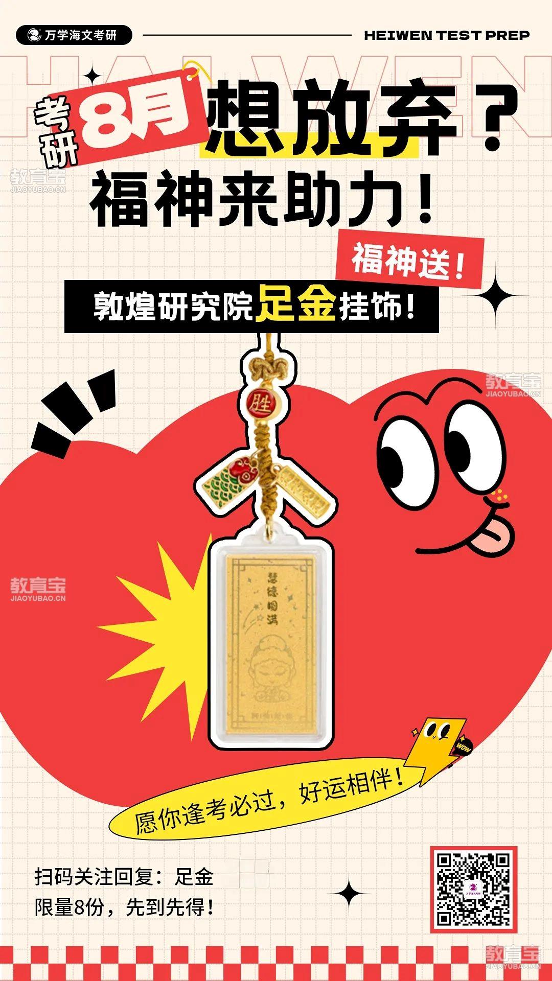 距离考试越来越近了想要弃考?海盐姐可不答应8月福神来了送足金挂饰,考研错题打印机!一起给你的文运加个“buff”好礼一:敦煌研究院足金挂饰好礼二:考研错题打印机活动说明1.活动时间:2025.8.7-2025.8.17(礼品数量有限,送完即止)2.兑礼说明:8月底统一...