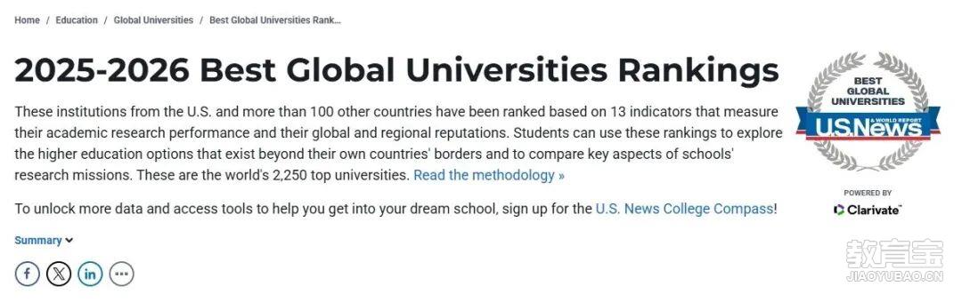 2026U.S.News世界大学排名美国大学表现