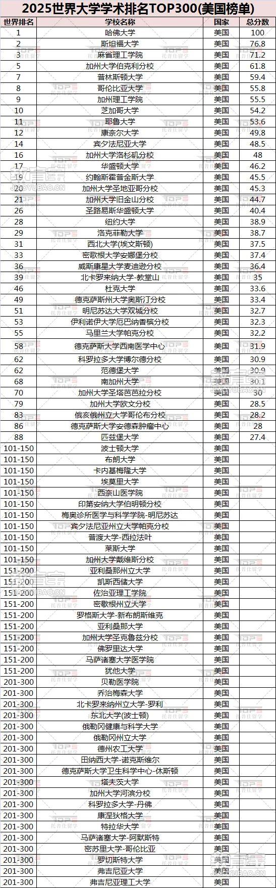 2025软科世界大学学术排名美国大学表现与麻省理工多年蝉联QS排名第*一样,哈佛大学在专攻学术的软科排名中也稳坐头把交椅,连续23年位居榜首!位置与2024版本一致,斯坦福大学和麻省理工学院紧随其后,名列前三位。再有本次排名的中,耶鲁大学(排名11)、康奈尔大学(排名12)、宾夕法尼亚大学(排名14)等老牌藤校也表现出色。美国公立大学中,除了排名第5的加州大学伯克利分校,另外加州大学洛杉矶分校(UCLA,排名16,下降1位)、加州大学圣地亚哥分校(UCSD,排名20,下降2位)、加州大学旧金山分校(UCSF,排名21,下降1位),均位居全球。而备受中国留学家庭青睐的密歇根大学安娜堡分校(排名33,下降3位)被挤出前三十。中,美国高校占据37席,这再次凸显了美国大学在学术领域的显著优势,这也印证了美国教育的地位。对于中国留学生而言,选择美国的大学意味着能够接触到*前沿的研究和教育资源,这也是留学的重要目的。