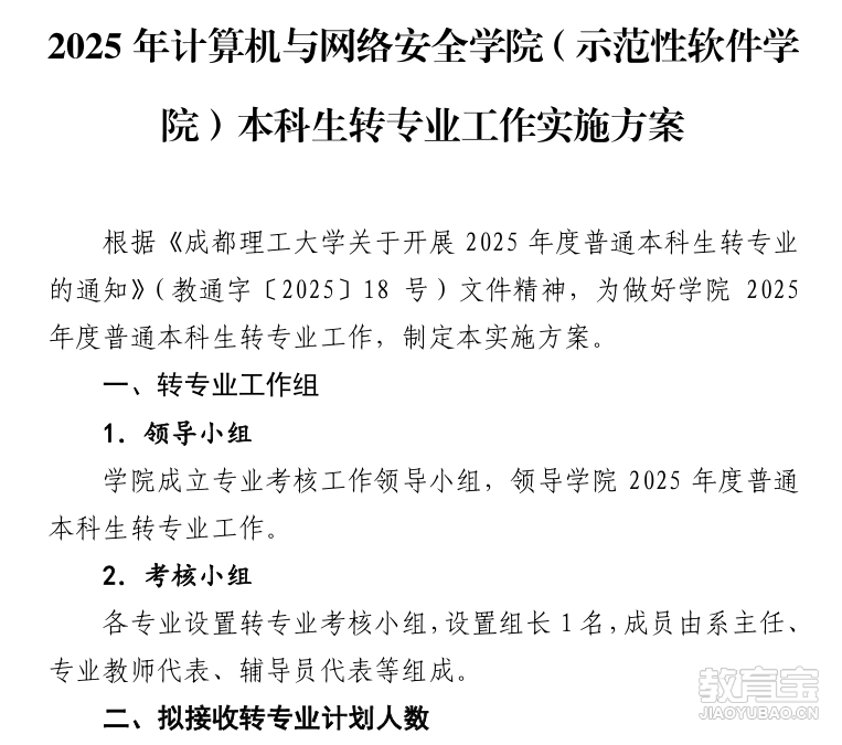 基于学校发布的全校性政策以及部分院系的细则,我们梳理出了以下关键结论,供大家参考。 计算机与网络安全学院(示范性软件学院)转专业工作方案