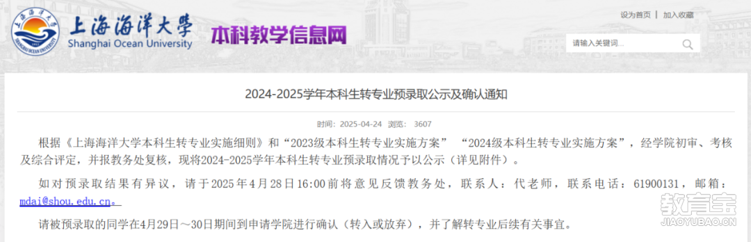 01转专业数据分析2025年4月,上海海洋大学发布了2024-2025学年转专业学生名单公示,共有188名学生成功转专业。
