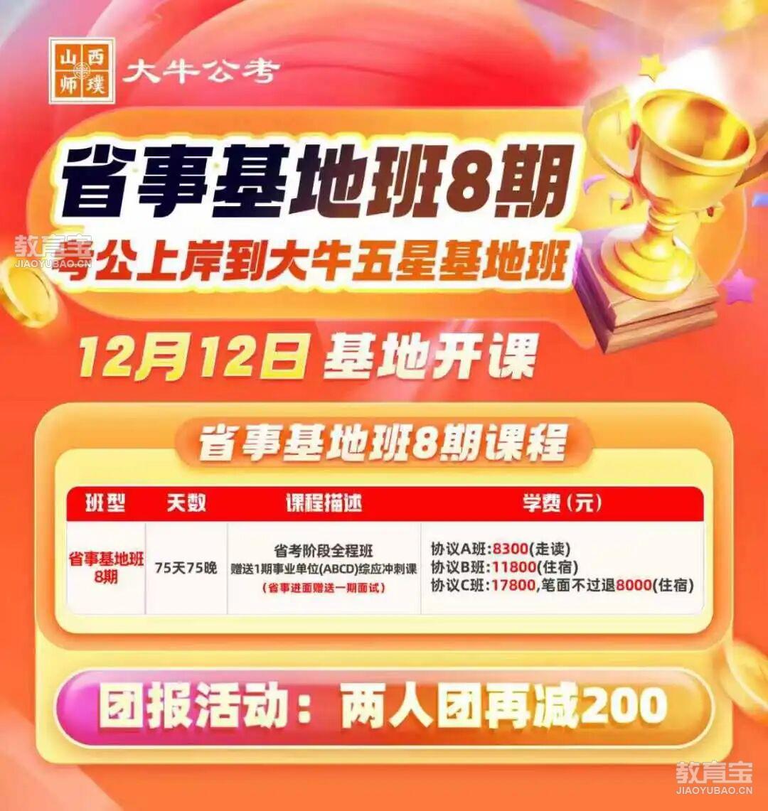 ??省事基地班8期12.12开课!??基地含住宿仅需1w出头!两人团报赠200基地卡!??抓紧私聊老师预约占座啦!