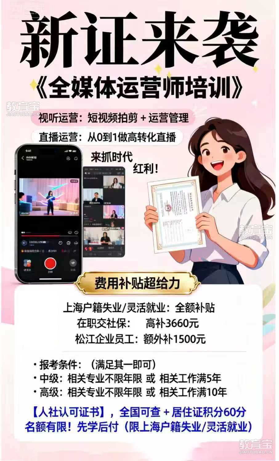 [人社认可证书],全国可查+居住证积分60分名额有限!先学后付(限上海户籍失业/灵活就业)
