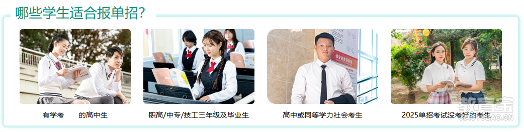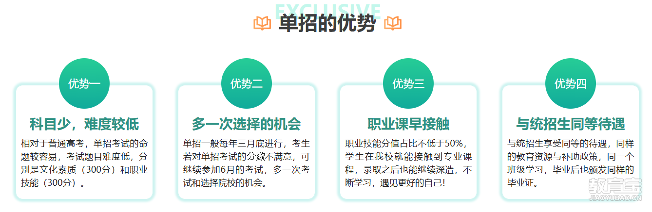 我省实施高职单招是贯彻落实《关于深化考试招生制度改革的实施意见》《国家职业教育改革实施方案》《关于推动现代职业教育高质量发展的意见》等文件精神,加快推进高等职业教育分类考试招生改革的重要举措。按照国家有关规定,高职院校分类考试招生与普通高校考试招生相对分开,更加突出职业教育人才培养规律,实行“文化素质+职业技能”的评价方式,是普通高校考试招生工作的重要组成部分,是技术技能人才选拔的重要渠道。