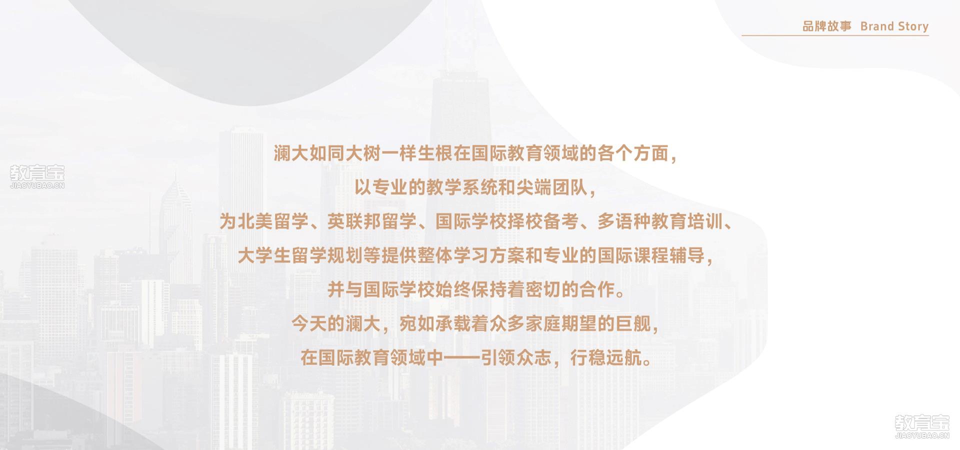 上海澜大教育集团成立于2010年,深耕国际语言培训行业15年,集国际语言培训、留学标准化考试、科目同步辅导、国际教育学术研发、国际学校升学规划、择校备考辅导、G5牛剑笔面试以及竞赛培优冲奖等服务于一体。